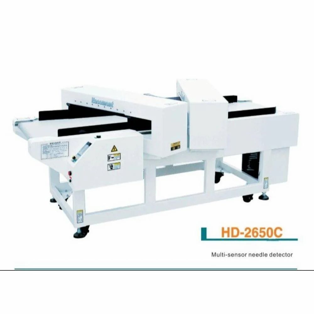 The HD-2650C features dual angled detection heads for high-speed apparel lines. The gold standard for export-quality manufacturers.